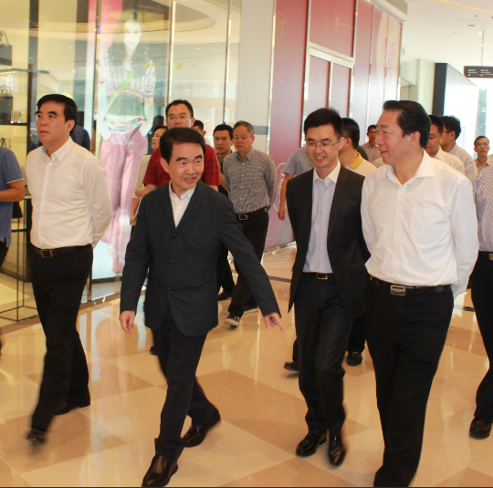 董事涂辉龙(左二)、副总裁涂尔帆(左三)与汕尾市委书记石奇朱、市长杨绪松参观海雅缤纷城