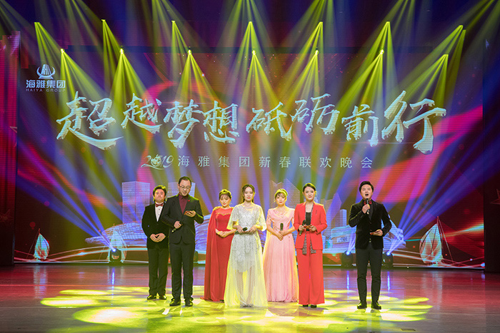 海雅集团2019年迎春联欢晚会正式拉开序幕,本次晚会共演出十个节目,类型包括歌舞串烧、器乐独奏、儿童独唱、跆拳道等,精彩绝伦的节目和绚丽夺目的舞台效果赢得了现场观众不断的掌声。