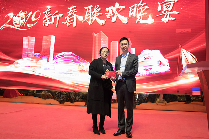 晚宴不仅有歌舞美食,更有大奖好礼送出,集团领导依次上台抽取了年会大奖,惊喜连连,引来阵阵掌声。晚宴现场还颁发了迎新春晚会的奖项,获奖节目的演员团队被授予荣誉锦旗。